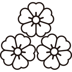 | 桜紋とは、日本の花の代名詞であり、国の花でもある桜の花をモチーフとした家紋。桜は、古くから田植えの時期を知らせる花として、「木花咲耶姫(このはなさくやびめ)」の化身とされた。家紋としては、散る、儚いイメージから当初は武家の家紋としては敬遠されたが、その優美なデザインから文様として愛用され、江戸時代には細川氏や松平氏、仙石氏といった大名家を含め、幕臣でも20数家が用いている。他に、木花咲耶姫を祀る神社が神紋として用いており、神社関連や名字に「桜」の文字を含む家の使用は多い。 |