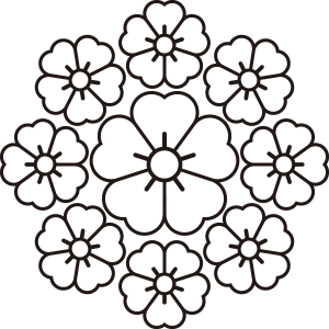 | 桜紋とは、日本の花の代名詞であり、国の花でもある桜の花をモチーフとした家紋。桜は、古くから田植えの時期を知らせる花として、「木花咲耶姫(このはなさくやびめ)」の化身とされた。家紋としては、散る、儚いイメージから当初は武家の家紋としては敬遠されたが、その優美なデザインから文様として愛用され、江戸時代には細川氏や松平氏、仙石氏といった大名家を含め、幕臣でも20数家が用いている。他に、木花咲耶姫を祀る神社が神紋として用いており、神社関連や名字に「桜」の文字を含む家の使用は多い。 |