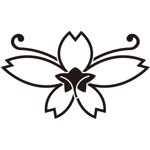 | 桜紋とは、日本の花の代名詞であり、国の花でもある桜の花をモチーフとした家紋。桜は、古くから田植えの時期を知らせる花として、「木花咲耶姫(このはなさくやびめ)」の化身とされた。家紋としては、散る、儚いイメージから当初は武家の家紋としては敬遠されたが、その優美なデザインから文様として愛用され、江戸時代には細川氏や松平氏、仙石氏といった大名家を含め、幕臣でも20数家が用いている。他に、木花咲耶姫を祀る神社が神紋として用いており、神社関連や名字に「桜」の文字を含む家の使用は多い。 |