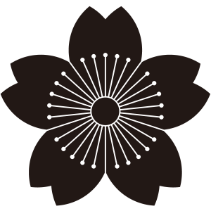 | 桜紋とは、日本の花の代名詞であり、国の花でもある桜の花をモチーフとした家紋。桜は、古くから田植えの時期を知らせる花として、「木花咲耶姫(このはなさくやびめ)」の化身とされた。家紋としては、散る、儚いイメージから当初は武家の家紋としては敬遠されたが、その優美なデザインから文様として愛用され、江戸時代には細川氏や松平氏、仙石氏といった大名家を含め、幕臣でも20数家が用いている。他に、木花咲耶姫を祀る神社が神紋として用いており、神社関連や名字に「桜」の文字を含む家の使用は多い。 |