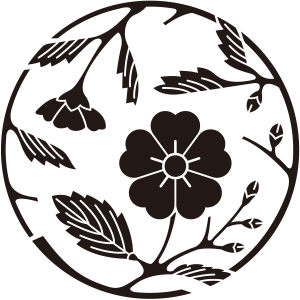 | 桜紋とは、日本の花の代名詞であり、国の花でもある桜の花をモチーフとした家紋。桜は、古くから田植えの時期を知らせる花として、「木花咲耶姫(このはなさくやびめ)」の化身とされた。家紋としては、散る、儚いイメージから当初は武家の家紋としては敬遠されたが、その優美なデザインから文様として愛用され、江戸時代には細川氏や松平氏、仙石氏といった大名家を含め、幕臣でも20数家が用いている。他に、木花咲耶姫を祀る神社が神紋として用いており、神社関連や名字に「桜」の文字を含む家の使用は多い。 |