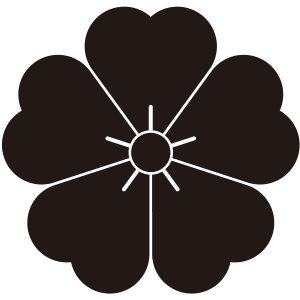 | 桜紋とは、日本の花の代名詞であり、国の花でもある桜の花をモチーフとした家紋。桜は、古くから田植えの時期を知らせる花として、「木花咲耶姫(このはなさくやびめ)」の化身とされた。家紋としては、散る、儚いイメージから当初は武家の家紋としては敬遠されたが、その優美なデザインから文様として愛用され、江戸時代には細川氏や松平氏、仙石氏といった大名家を含め、幕臣でも20数家が用いている。他に、木花咲耶姫を祀る神社が神紋として用いており、神社関連や名字に「桜」の文字を含む家の使用は多い。 |