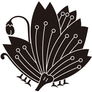 | 桜紋とは、日本の花の代名詞であり、国の花でもある桜の花をモチーフとした家紋。桜は、古くから田植えの時期を知らせる花として、「木花咲耶姫(このはなさくやびめ)」の化身とされた。家紋としては、散る、儚いイメージから当初は武家の家紋としては敬遠されたが、その優美なデザインから文様として愛用され、江戸時代には細川氏や松平氏、仙石氏といった大名家を含め、幕臣でも20数家が用いている。他に、木花咲耶姫を祀る神社が神紋として用いており、神社関連や名字に「桜」の文字を含む家の使用は多い。 |