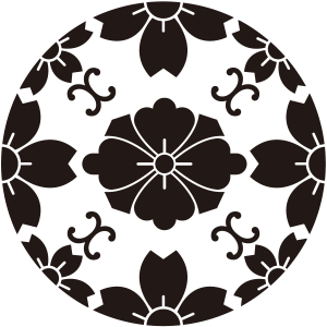 | 桜紋とは、日本の花の代名詞であり、国の花でもある桜の花をモチーフとした家紋。桜は、古くから田植えの時期を知らせる花として、「木花咲耶姫(このはなさくやびめ)」の化身とされた。家紋としては、散る、儚いイメージから当初は武家の家紋としては敬遠されたが、その優美なデザインから文様として愛用され、江戸時代には細川氏や松平氏、仙石氏といった大名家を含め、幕臣でも20数家が用いている。他に、木花咲耶姫を祀る神社が神紋として用いており、神社関連や名字に「桜」の文字を含む家の使用は多い。 |