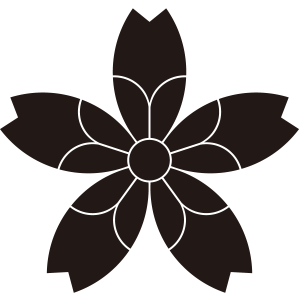 | 桜紋とは、日本の花の代名詞であり、国の花でもある桜の花をモチーフとした家紋。桜は、古くから田植えの時期を知らせる花として、「木花咲耶姫(このはなさくやびめ)」の化身とされた。家紋としては、散る、儚いイメージから当初は武家の家紋としては敬遠されたが、その優美なデザインから文様として愛用され、江戸時代には細川氏や松平氏、仙石氏といった大名家を含め、幕臣でも20数家が用いている。他に、木花咲耶姫を祀る神社が神紋として用いており、神社関連や名字に「桜」の文字を含む家の使用は多い。 |