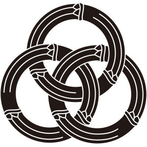 三つ竹輪違い紋は、3つの『竹輪』を『三つ輪違い』の形に描く。