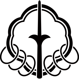 | 錫杖は僧や修験者がもつ法具で、頭部に金属製の輪がついた杖。元はインドで旅行者が輪をならして猛獣を追い払うのに用いていたものが、日本には古くに伝わり修行者の法具となった。錫杖紋は坂上田村麻呂が陣中で用いたのが最初で、後に津軽氏の専用紋となった。 |