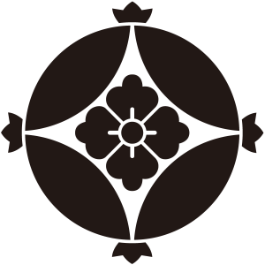 花付き七宝に花角紋は、花が4つ付いた『七宝』の中に『花角』を描く。