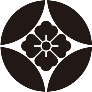 七宝に花角紋は、『七宝』の中に『花角』を描く。日向高鍋藩秋月氏、肥前平戸藩松浦氏、旗本富永氏の家紋。