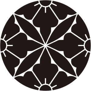 | 七宝紋とは、連続文様の『輪違い紋』から生まれた文様。輪が四方に広がるという意味から「四方」、「七宝」になった。また、仏教では宝塔を飾る七つの宝玉(金、銀、瑠璃−ルリ、瑪瑙-メノウ、珊瑚-サンゴ、硨磲-シャゴ:シャコガイ、玻璃-ハリ:水晶)が功徳を指すことから「七宝」も吉祥の紋とされる。宇多源氏佐々木氏族の諸家での使用が多い。 |