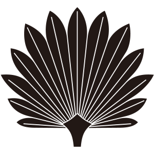 | 棕櫚紋は、植物の棕櫚(しゅろ)の葉をモチーフとした家紋。棕櫚は古来より日本に育成するヤシ科の常緑樹のことで、心霊の依代とされ、棕櫚団扇には神通力が宿るという。妖怪の天狗がもっている団扇がまさに棕櫚団扇。宗教的な意義により家紋となった。 |