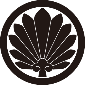 | 棕櫚紋は、植物の棕櫚(しゅろ)の葉をモチーフとした家紋。棕櫚は古来より日本に育成するヤシ科の常緑樹のことで、心霊の依代とされ、棕櫚団扇には神通力が宿るという。妖怪の天狗がもっている団扇がまさに棕櫚団扇。宗教的な意義により家紋となった。 |