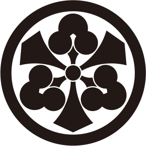 丸に剣三つ洲浜紋は、洲浜紋の一種で、『剣三つ洲浜』を描いて、その周りを通常の太さの丸で囲う。「丸に剣三つ洲浜(まるにけんみつすはま)」