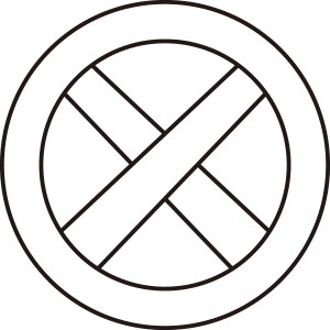 | 直違紋とは、建物の柱と柱の間にX状に斜めに入れる補強材の直違(筋違・筋交/すじかい)をモチーフとした家紋。直違は地震や風で建物が倒れるのを防ぐ役目があることから、家を守る、城を守るということにかけて、尚武的な意で家紋となった。 |