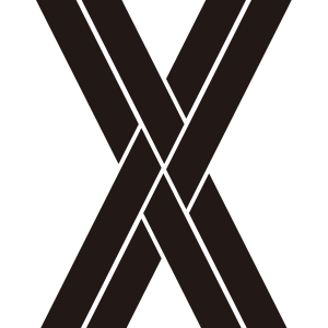 組み直違紋(3)は、少し細い4本の線を2本ずつ、距離を近く左右から斜めに組み合わせてバツの字形に描く。