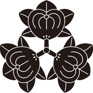 黒田橘紋は、実から5枚の葉がでた『橘紋』を3つ三方向に車状に描く。筑前福岡藩黒田氏、筑前秋月藩黒田氏の家紋の一つということで『黒田橘』と呼ばれる。