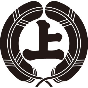 抱き鷹の羽に上文字紋は、鷹の羽紋の一種で、『抱き鷹の羽』を描いて、その中に『上文字』を描く。上田氏は名字にちなんで用いた。