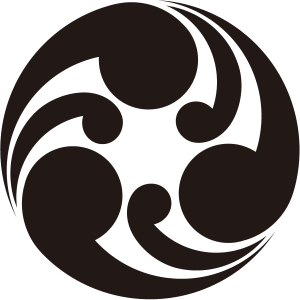 | 巴紋とは、縄文遺跡にもみられる非常に古い文様で、雷神が背負う太鼓にも描かれるように雷鳴を表している。※渦や蛇、雲、胎児、鞆絵(ともえ)に由来する説あり。歴史上最初に登場する家紋で、公家、武家の家紋の他にも、神社の神紋、お寺の寺紋など非常に多く使用されており、その種類も極めて多い。尾(細い部分)の向きにより「左三つ巴」「右二つ巴」など呼ばれるが、頭(丸い部分)の向きにより「三頭右巴」や「二頭左巴」とも呼ばれる。つまり「左三つ巴」と「三頭右巴」は同じものであり、このため向きに関しては勘違いや間違いも非常に多い家紋である。単に「一つ巴」や「三つ巴」と書く場合は尾が左向きを指すことが多い。古くからの文様であり、紋自体に特別な意味をもつため、さまざまな意義により家紋となったと思われる。 |