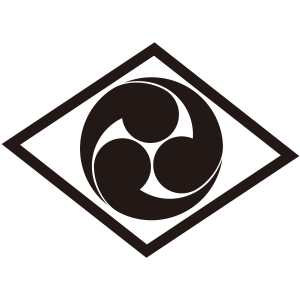 菱に三つ巴紋は、『左三つ巴』を描いて、その周りを菱で囲う。