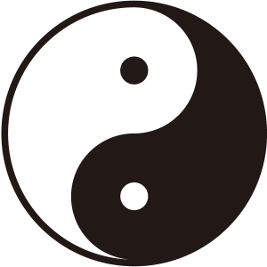 陰陽勾玉巴紋は、陰と日向の勾玉状の巴を左右から合わせて描く。
