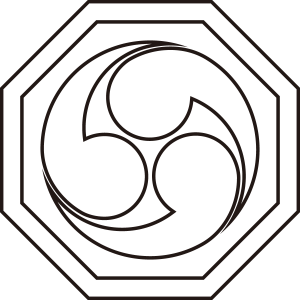 総陰八角に右三つ巴紋は、『八角に右三つ巴』を輪郭線のみで描く。