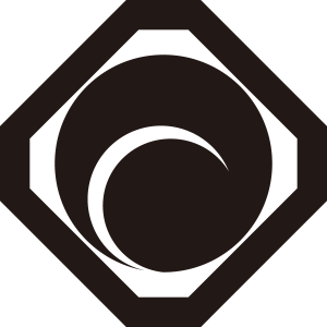 隅切り角に一つ巴紋は、『左一つ巴』の周りを『隅切り角』で描く。