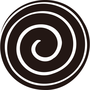 渦巻き巴紋は、『左一つ巴』の尾(先端が細いほう)を長くして渦を巻くように描く。別名『左渦巻き巴』。
