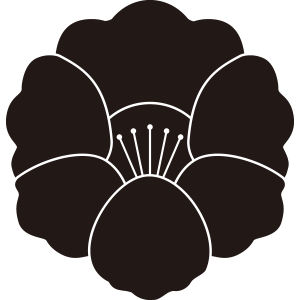 椿の花紋は、6枚の花弁の中心に円筒のシベをつけた椿の花を描いた
