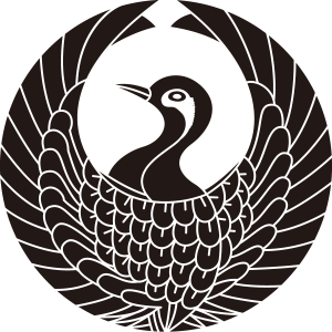 鶴の丸紋(2)は、顔の向きをやや左上に向けた『鶴の丸』。播磨三日月藩森氏の家紋。
