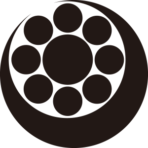 半月に九曜紋は、左向きに『半月』を描いて、その中に『九曜』を描く。