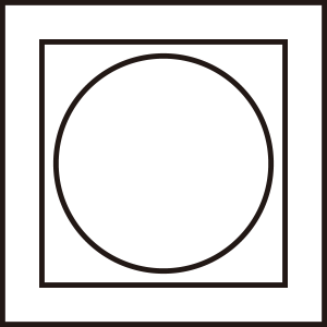 枡形に月紋は、『枡形に月』を輪郭線のみで描く。別名『陰黒田枡形に月』。