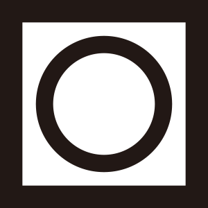 枡形に陰月紋は、正方形の枠の中に輪郭線のみの『陰月』を描く。別名『黒田枡形に陰月』。