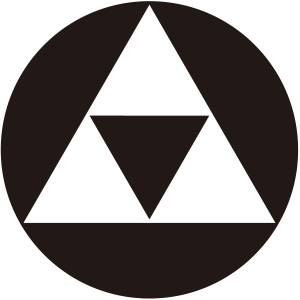 石持ち地抜き三つ鱗紋は、地と反対色の円を描き、色を抜くように『三つ鱗』を描く。