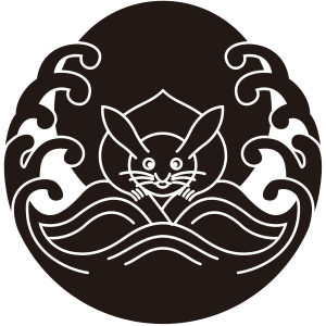浪に月に兎紋は、真正面を向いた1羽の兎の背後に満月を据えて、左右から波を立たせて丸く描く。謡曲の『竹生島』をイメージした家紋。