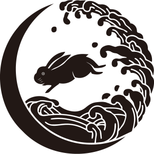 夕波兎紋は、飛び跳ねる1羽の兎の周りに波と月を丸く描く。謡曲の『竹生島』をイメージした家紋。