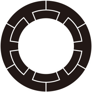 | 輪紋は通常では単独で用いられることは少なく、本家と分家の違いを分けるためや文様のバランスを取るために外郭として用いられることが多い。ちなみに、もっとも単純な他の家紋を囲う装飾の輪は「丸」と呼ばれる。 |