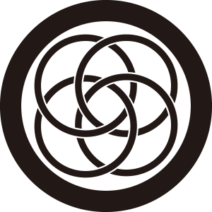 | 輪違い紋とは、2個以上の輪が組み合って連結した形を紋章化したもののこと。輪の数は2個から10個まであり、組み方によっていろいろな形がある。ただし、4つ以上の輪で中央に唐花を組み入れた文様は『花輪違い』『七宝紋』と呼び区別する。また、『釜敷紋』とも形状が酷似しているがその境界は曖昧で、大まかには輪の太さで区別した。 輪違い紋は平安時代より用いられ当時の人々にも愛好されており、尚美的な意義により家紋となった。南北朝の時代にはすでに見られるように古くから使われている家紋。 |