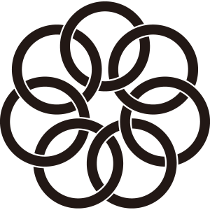 | 輪違い紋とは、2個以上の輪が組み合って連結した形を紋章化したもののこと。輪の数は2個から10個まであり、組み方によっていろいろな形がある。ただし、4つ以上の輪で中央に唐花を組み入れた文様は『花輪違い』『七宝紋』と呼び区別する。また、『釜敷紋』とも形状が酷似しているがその境界は曖昧で、大まかには輪の太さで区別した。 輪違い紋は平安時代より用いられ当時の人々にも愛好されており、尚美的な意義により家紋となった。南北朝の時代にはすでに見られるように古くから使われている家紋。 |
