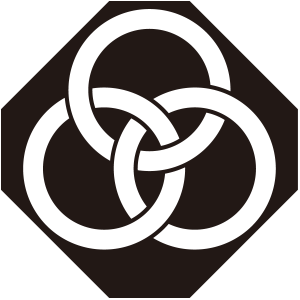 | 輪違い紋とは、2個以上の輪が組み合って連結した形を紋章化したもののこと。輪の数は2個から10個まであり、組み方によっていろいろな形がある。ただし、4つ以上の輪で中央に唐花を組み入れた文様は『花輪違い』『七宝紋』と呼び区別する。また、『釜敷紋』とも形状が酷似しているがその境界は曖昧で、大まかには輪の太さで区別した。 輪違い紋は平安時代より用いられ当時の人々にも愛好されており、尚美的な意義により家紋となった。南北朝の時代にはすでに見られるように古くから使われている家紋。 |