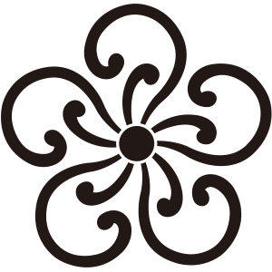 蕨梅紋は、複数の小さく巻いた芽を持つ蕨を5弁の梅の花形に描く。
