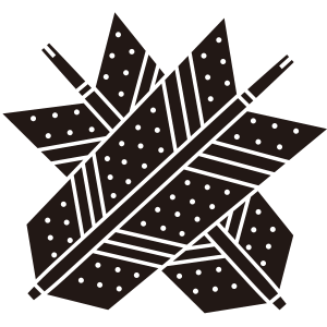 | 矢は先端の矢尻、柄の部分の矢柄、軌道を安定させる矢羽、矢を弦に番える矢筈の4つの部分から構成される武器で尚武的、信仰的意義により家紋となった。図柄は矢尻、矢羽、矢筈を単独で描いたものと、矢の全体を描いたものがある。 |