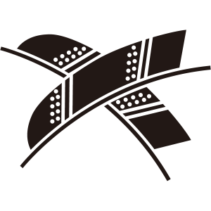 片桐違い矢紋は、一部に斑(ふ)のある矢羽を2つに割って湾曲させ、左右から斜めに重ね合わせて描く。大和小泉藩片桐氏の家紋ということで『片桐違い矢』と呼ばれる。