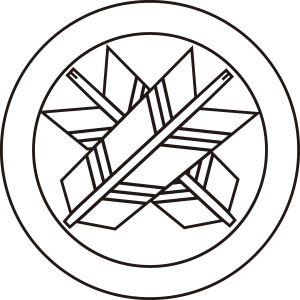 総陰丸に違い矢紋は、『丸に違い矢』を輪郭線のみで描く。