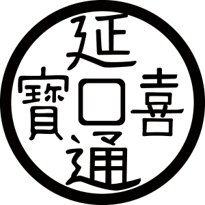 延喜通宝紋は、延喜7年に鋳造された延喜通宝を象った家紋。延喜通宝は皇朝十二銭の一つ。縁起がよく瑞祥的なことから使用された。