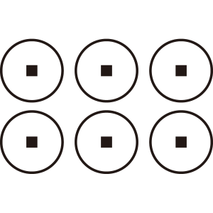 陰真田六連銭紋は、『真田六文銭』を輪郭線のみで描く。別に『陰六連銭』とも呼ばれる。