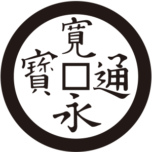 寛永銭紋は、江戸初期の寛永年間から明治時代にかけて使用された寛永通宝を象った家紋。縁起がよく瑞祥的なことから使用された。