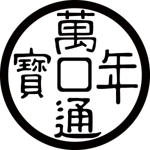 萬年通宝紋は、天平宝字4年に鋳造された萬年通宝を象った家紋。萬年通宝は皇朝十二銭の一つ。縁起がよく瑞祥的なことから使用された。