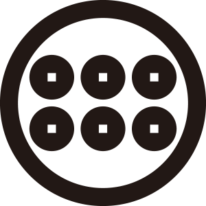 丸に六連銭紋は、『六連銭』を描いて、その周りを通常の太さの丸で描く。